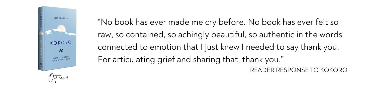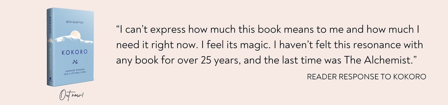 If you have enjoyed this brief encounter, and you too are navigating a life transition, then you might just love my new book KOKORO: Japanese wisdom for a life well lived, which is out now.