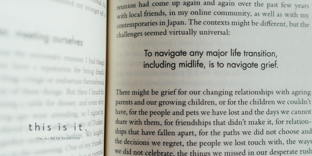 On reflection, that evening’s conversation was a very frank one given that we had only just met, and given that Nakaji-san swirls around in a secretive world. Many of the themes that came up when we chatted had also come up again and again over the past few years with local friends, in my online community, as well as with other contemporaries in Japan. The contexts might be different, but the challenges seemed virtually universal: To navigate any major life transition, including midlife, is to navigate grief. This is something I explore in depth in Kokoro.